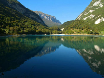 Este escenario tiene una extraordinaria variedad de paisajes, de majestuosas cumbres cubiertas de nieve, bosques, amplios valles, cursos de agua, lagos, un juego mágico de luces entre los picos de las Dolomitas, pueblos de ensueño con sus campanarios y los mil tonos de una naturaleza auténtica y virgen. Es característico el panorama del Lago de Garda (en la imagen), considerado uno de los más bellos del mundo, que en la región del Trentino se estrecha y aparece como un fiordo encerrado entre las altas montañas.